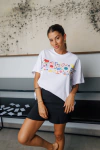 Remera over en rib de algodón, escote redondo y manga corta arriba del codo. Estampa en DTF.
